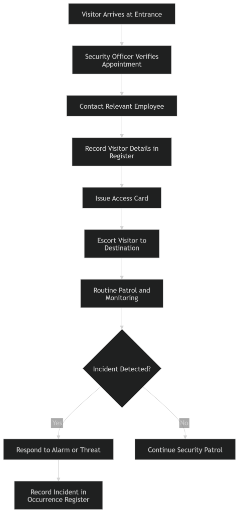 The following diagram illustrates the operational flow followed by Security Officers when managing access control and incident monitoring within CGS facilities.